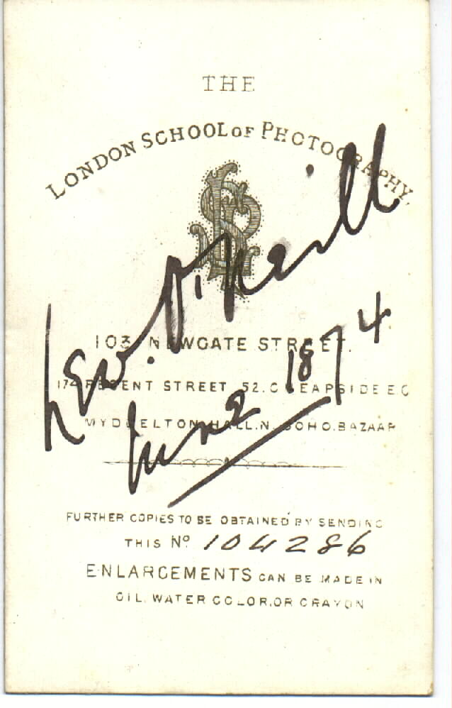 | London School of Photography, 103 Newgate Street | "Leo. O'Neill June 1874" image70b.jpg | image70.jpg |